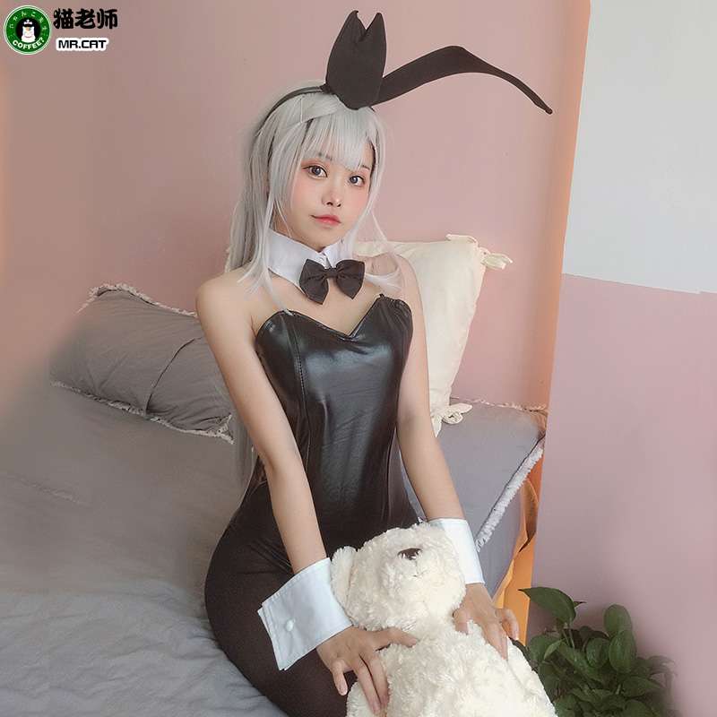 うさ耳カチューシャ、ボディスーツ、蝶ネクタイ、カフスがセットになった魅惑的なコスプレ衣装です。シルエットを美しく見せるデザインで、ぬいぐるみ付きでキュートな演出も可能。パーティーやイベントで注目を集める一着です。